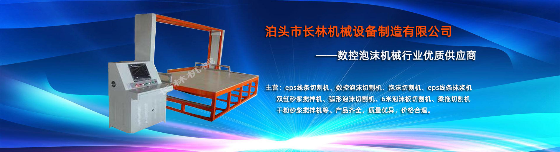 泊頭市長(zhǎng)林機(jī)(jī)械設(shè)(shè)備制造有限公司座落于河北省泊頭市開發(fā)(fā)區(qū)(qū),地處北京、天津、濟(jì)(jì)南、石家莊中心位置。京滬高速、京滬鐵路、106國道、104國道穿行于本市,交通便利。 本公司是集多功能數(shù)(shù)控泡沫切割機(jī)(jī)的自主研發(fā)(fā)、生產(chǎn)(chǎn)、銷售和服務(wù)(wù)于一體的企業(yè)(yè),eps線條設(shè)(shè)備,數(shù)(shù)控泡沫切割機(jī)(jī),發(fā)(fā)泡陶瓷切割機(jī)(jī),eps線條切割機(jī)(jī)銷往全國各地,并開辟了國際合作的廣闊渠道。創(chuàng)(chuàng)新不斷的長(zhǎng)林?jǐn)?shù)控機(jī)(jī)械有限公司經(jīng)(jīng)過幾年的不斷研究,完善了建筑裝飾構(gòu)(gòu)件的配套設(shè)(shè)備和自動(dòng)化設(shè)(shè)備,由過去手工生產(chǎn)(chǎn)到半自動(dòng)生產(chǎn)(chǎn)發(fā)(fā)展到現(xiàn)(xiàn)在的CNC控制的全自動(dòng)零誤差數(shù)(shù)控泡沫切割機(jī)(jī)床。不但讓客戶在交貨期上面爭(zhēng)取了時(shí)間而且···